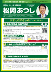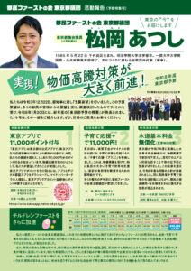 して欲しいというご意見を多数いただき、さらには都民ファーストの代表よりお声がけをいただき再び政治家として立ち上がる決意をいたしました。